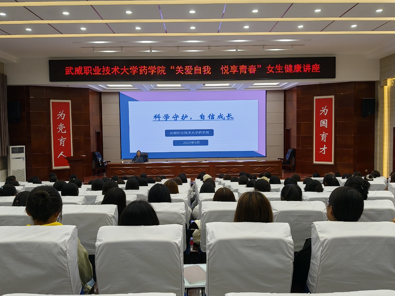 為幫助我院女生適應青春期身心變化,掌握心理調適技巧,普及健康知識,9月22日,藥學院副院長馬琪在菁英廳開展了“關愛自我、悅享青春”女生健康主題講座,藥學院360名女生分2批聆聽了本次講座。