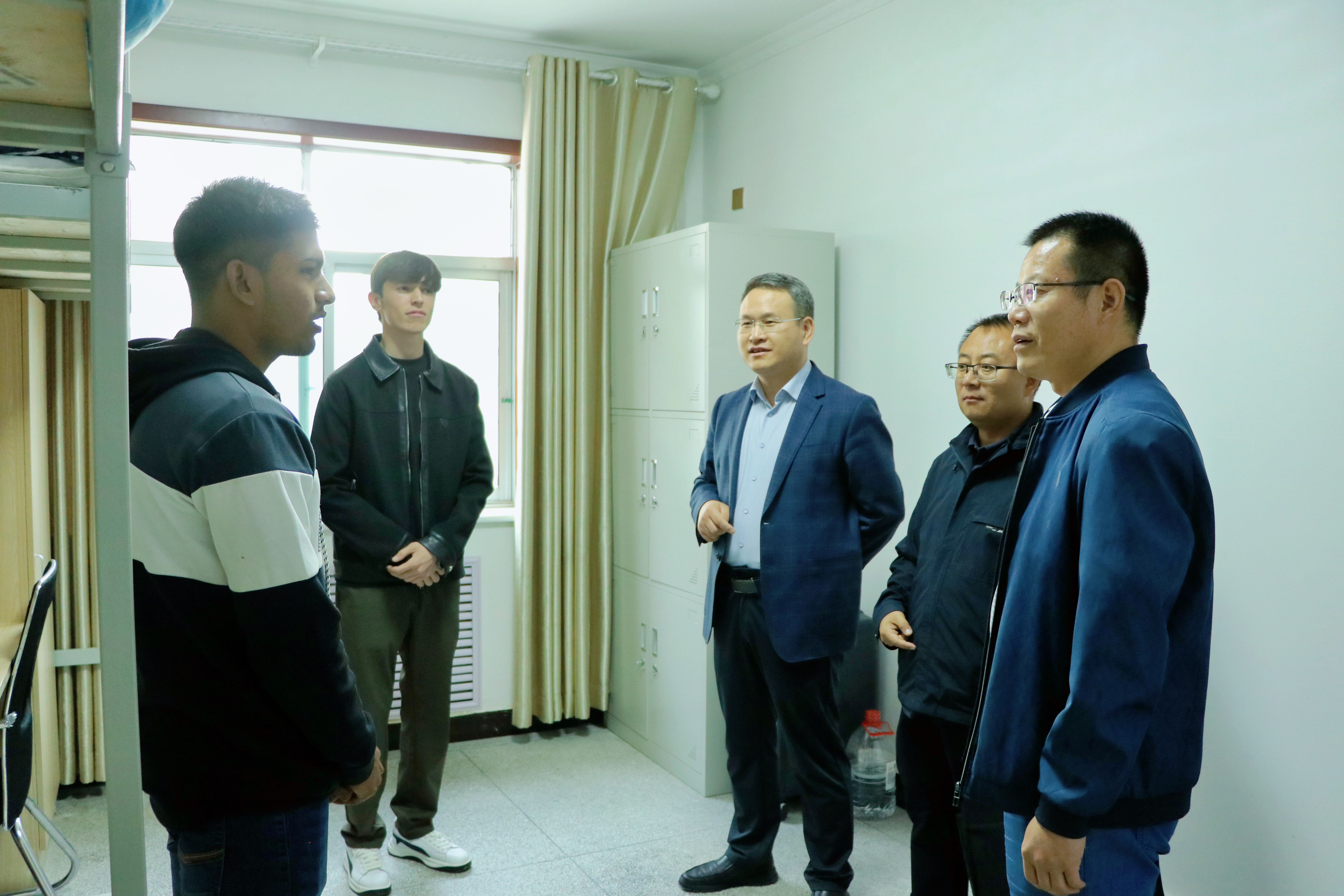 9月24日,學校黨委委員、副校長伍國強深入國際學生宿舍,開展走訪慰問活動。國際合作交流處負責同志一同慰問。