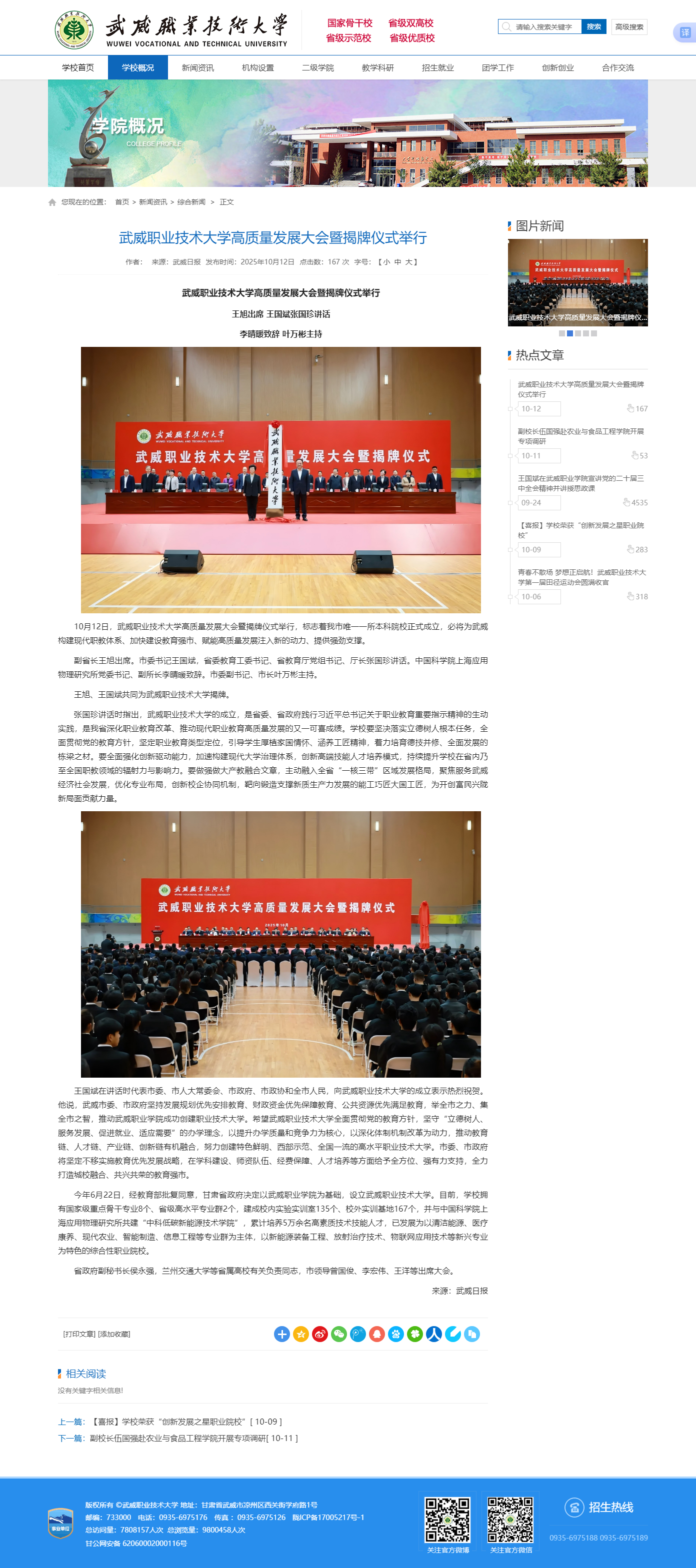 武威職業技術大學高質量發展大會暨揭牌儀式舉行