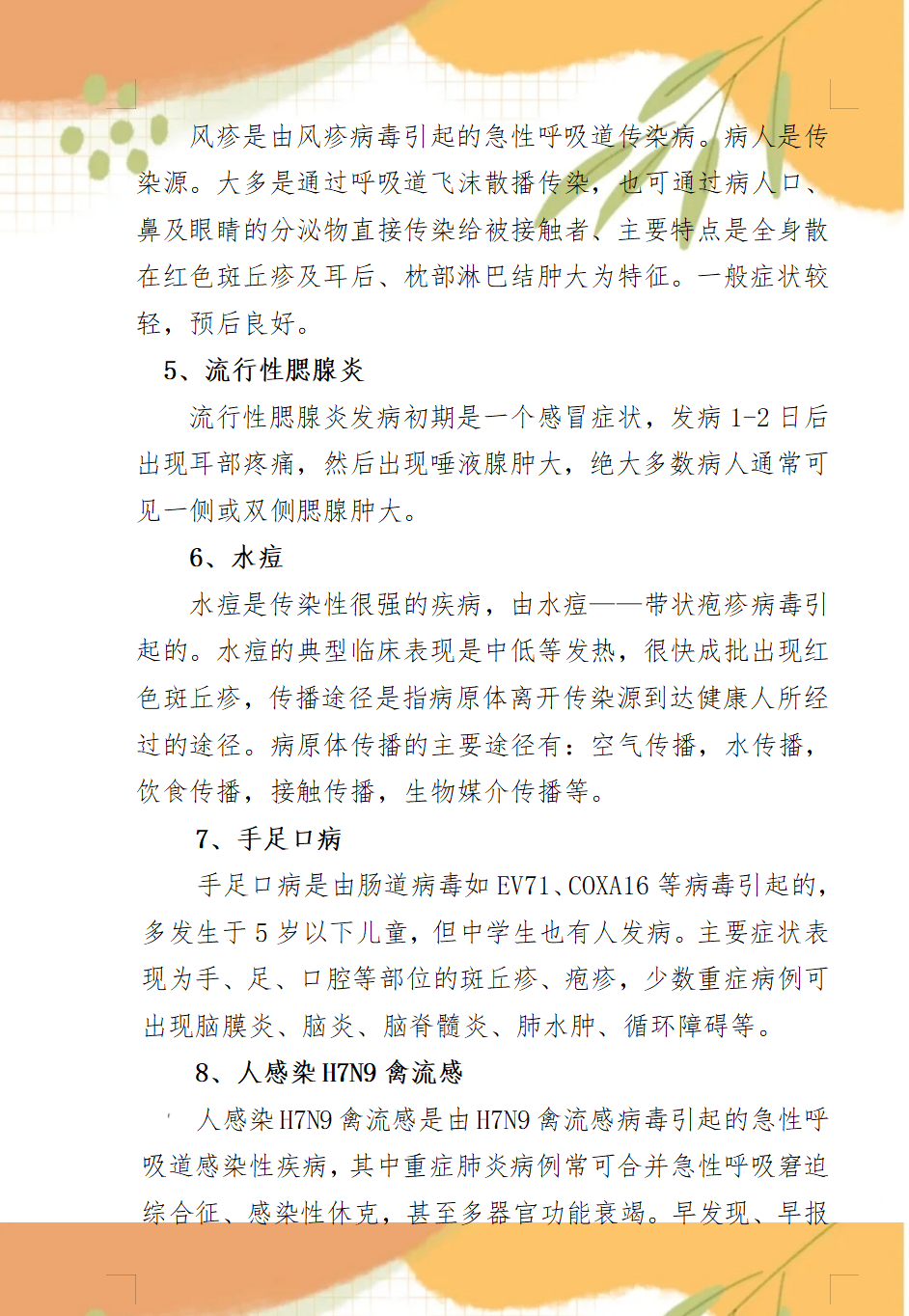 春秋季其他類傳染病預防知識
