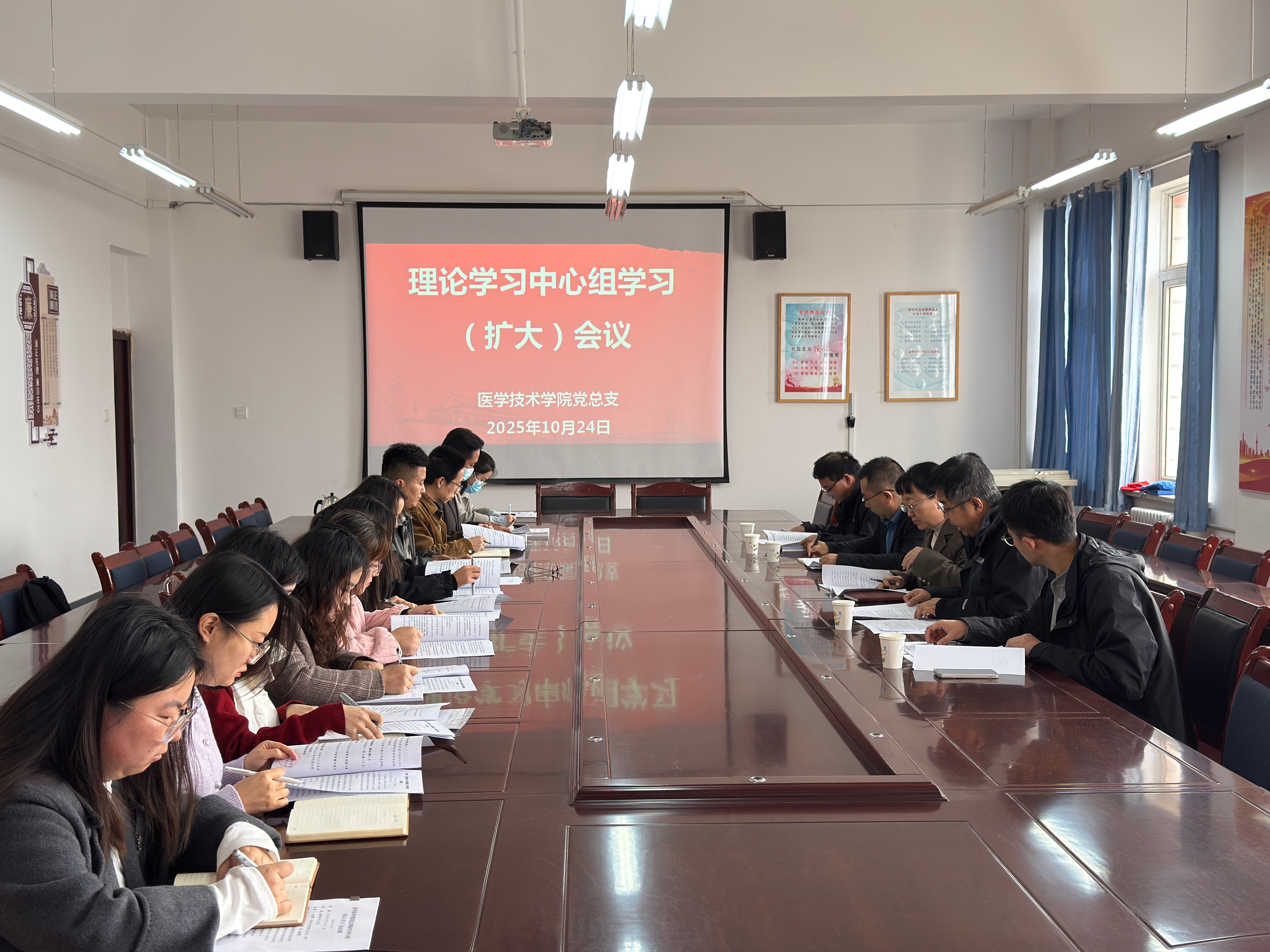10月24日,醫學技術學院黨總支召開理論學習中心組學習(擴大)會議,開展《習近平談治國理政》(第五卷)專題學習。學校黨委委員、副校長田迎春列席會議并作指導講話,發展規劃處副處長張偉東、干部桂贇列席旁聽,學院黨總支理論學習中心組成員、教研室主任及學院行政人員參加學習。醫學技術學院黨總支書記張建輝主持會議。