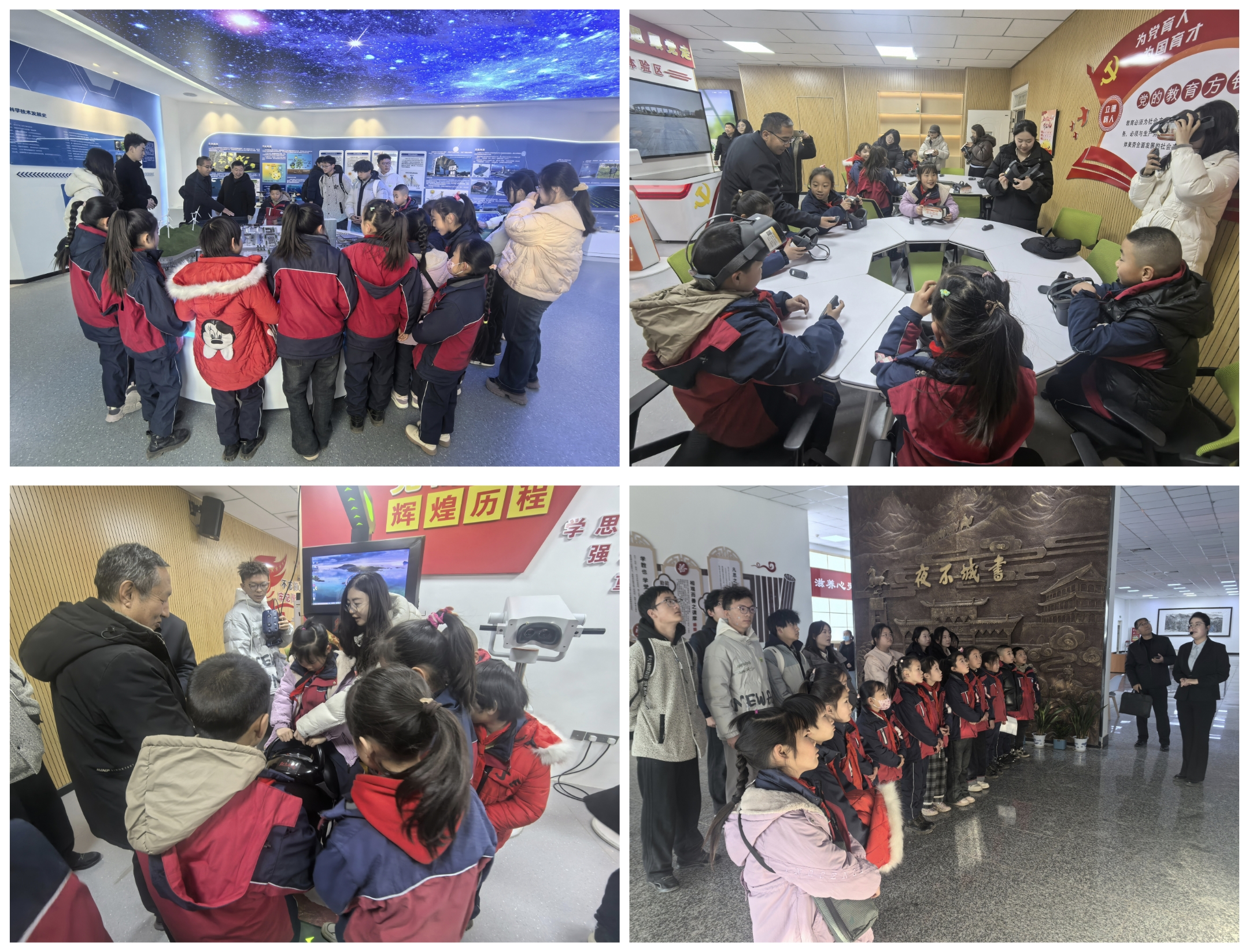 共建簽約儀式后,學生們參觀了學校圖書館、新能源科技館、課程思政教學研究示范中心等場館。孩子們穿梭于書香四溢的閱覽區,駐足于各種先進的模型與互動裝置前,直觀感受VR技術賦能思政課堂的創新魅力,眼神中充滿了對知識的渴望與探索,這次參觀不僅是一次校園環境體驗,更是一次深刻的“潤物細無聲”思政教育,在孩子們心中播下了求知與創新的種子。