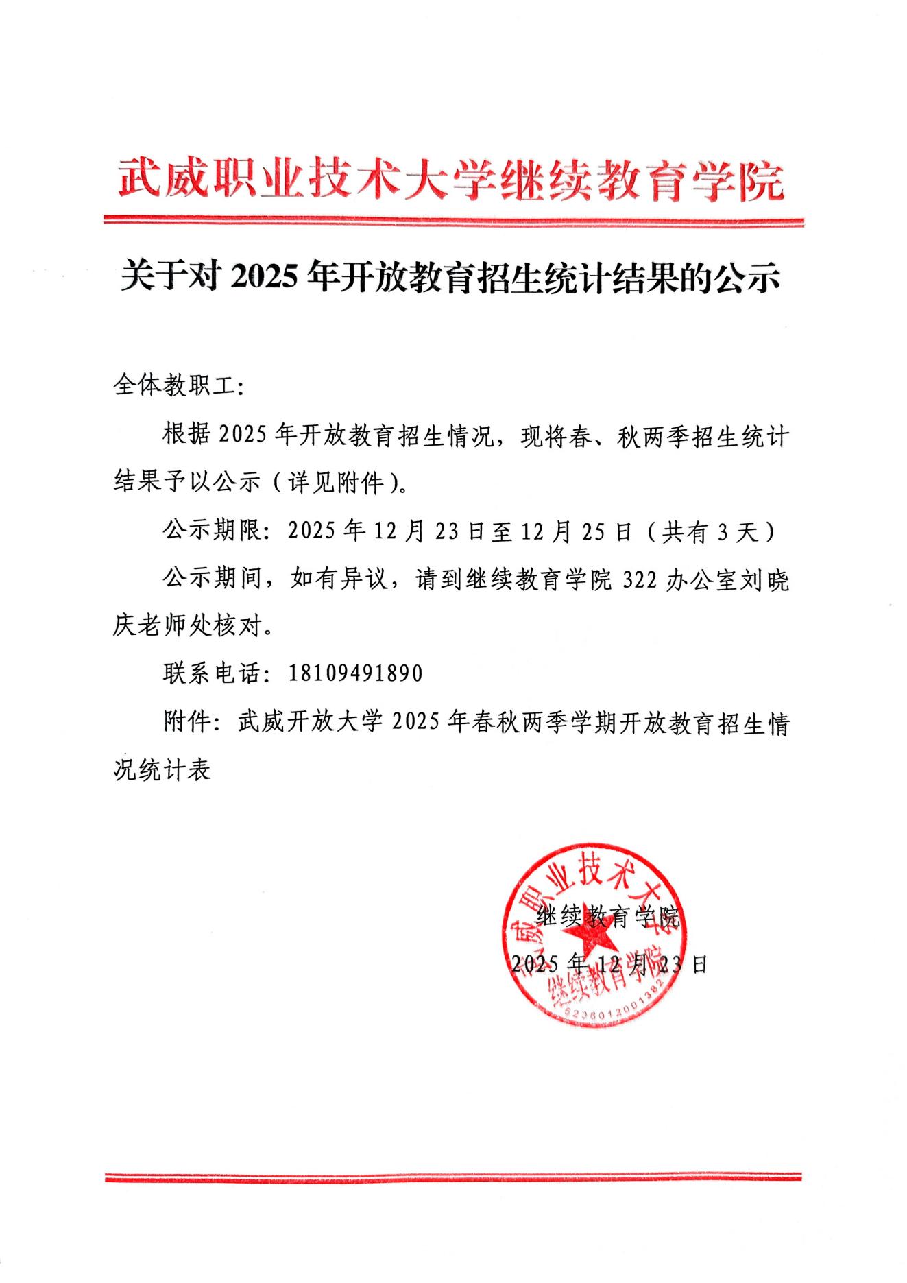 關于對2025年開放教育招生統(tǒng)計結(jié)果的公示